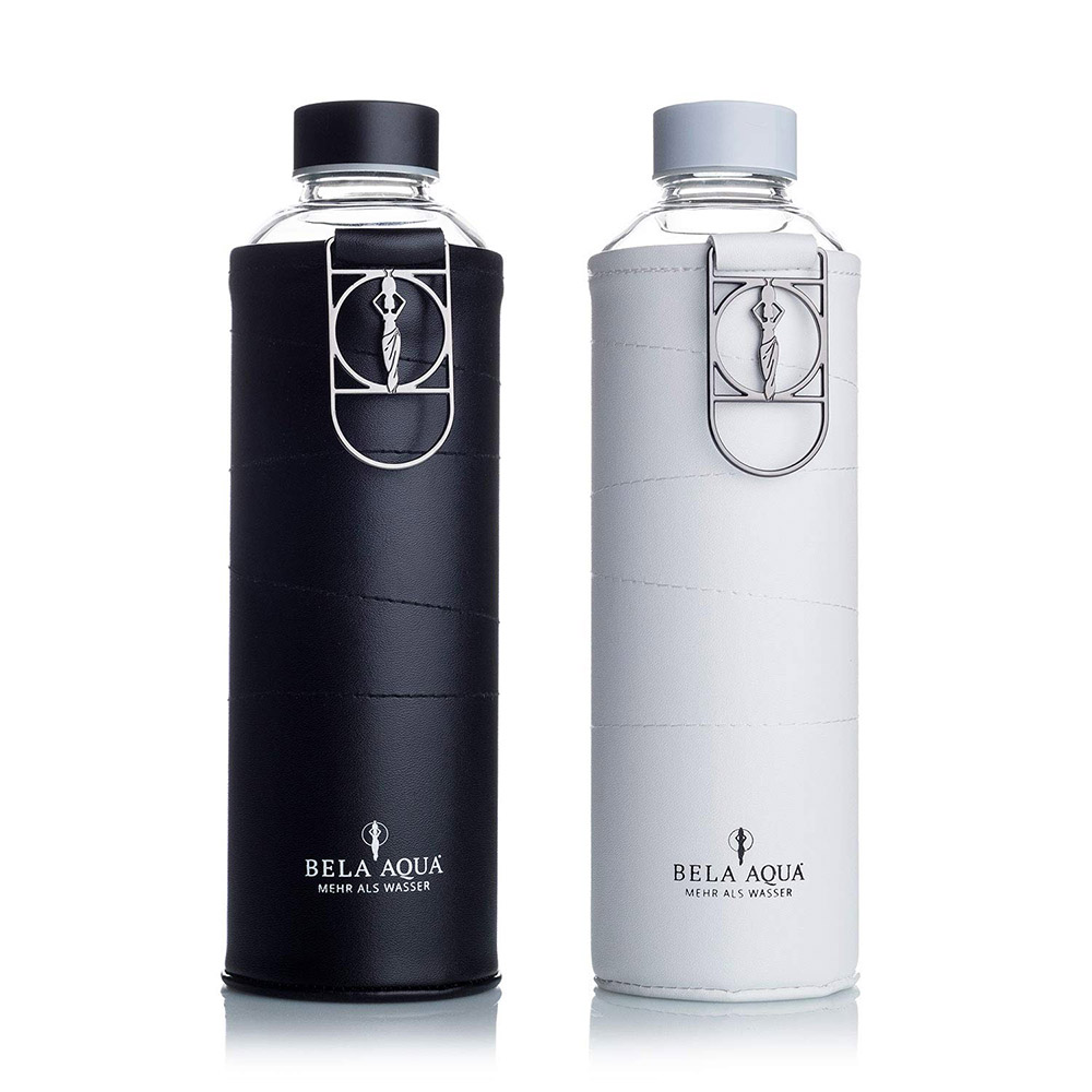 Die stylische Bela Aqua Trinkflasche aus Glas.