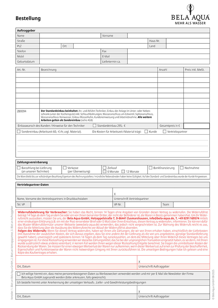 Bestellung/Kaufvertrag für Kunden Bitte beachten Sie: Die maximale Bestellmenge ist: 10 Stk.