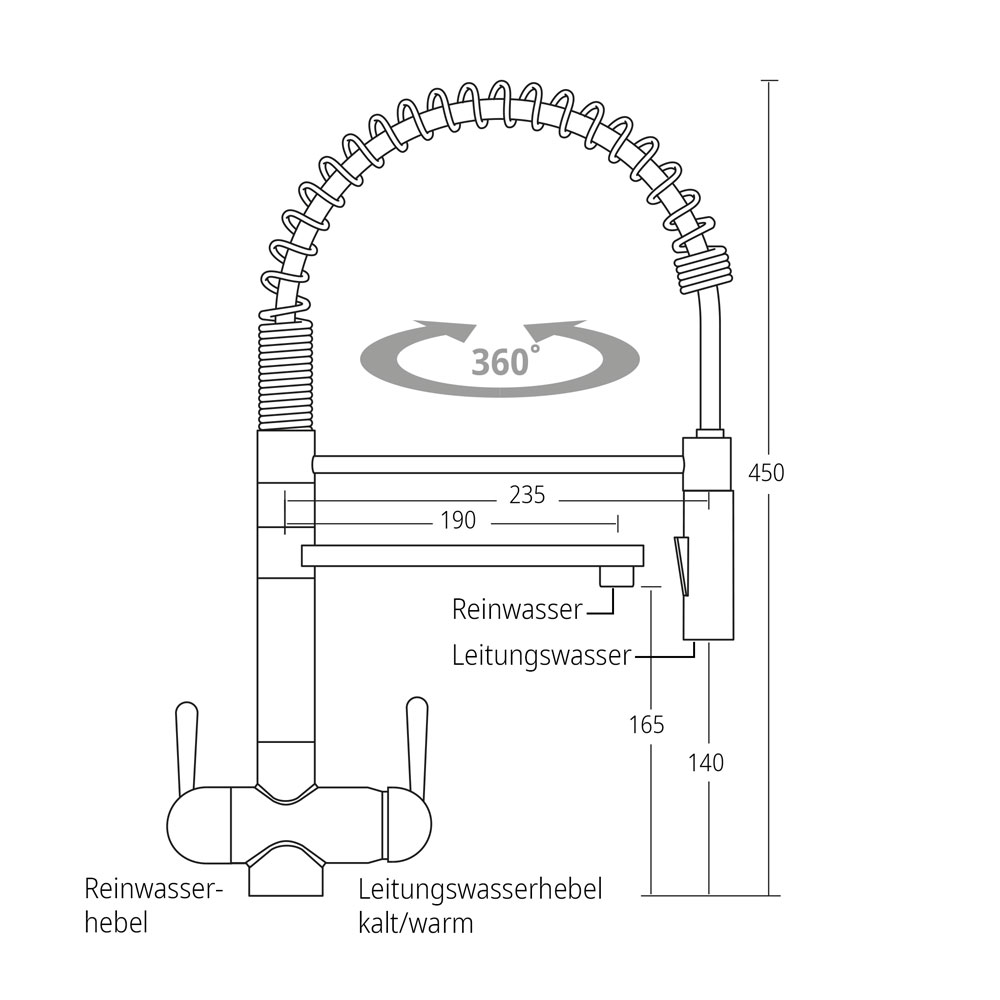 • Auslauf für gefiltertes Reinwasser um volle 360 Grad schwenkbar